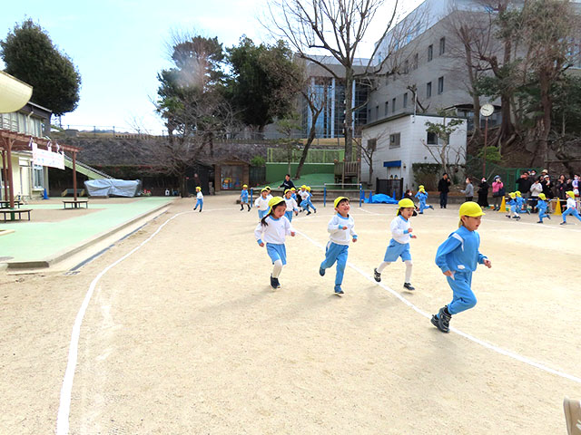 小さな子どもたちは5分、年中さんは7分、年長さんは15分走りました。