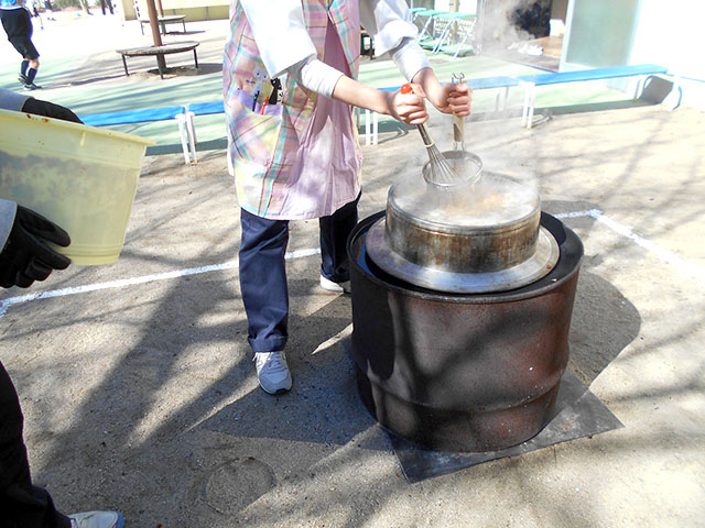 いも煮を作りました。味の決め手は、『みんなで作った味噌。』味見に感激!