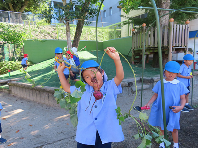 A組さんが育ててくれたさつま芋。おっきいのが掘れるかな??
