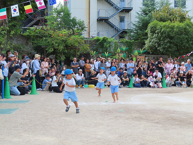 秋晴れの中での運動会。今年もたくさんのお客様が応援に来てくださいました。