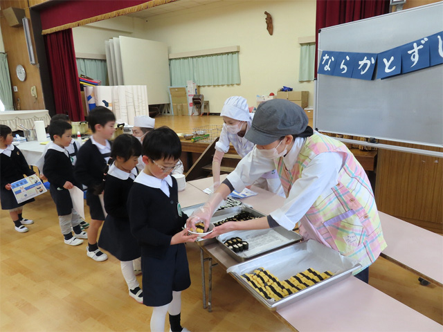 大きな鰤をさばくところを間近に見させていただきながら、命を毎日いただいて食事をしていること、また生き物の体の仕組みについて教えてもらいました。学んだあとは、ぶりのしゃぶしゃぶと、照り焼きにしておいしくいただきました。今年は、『ならかとずし』が開店です。