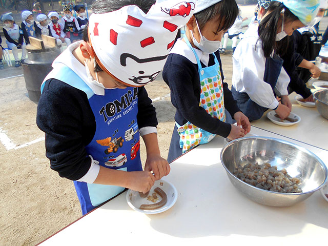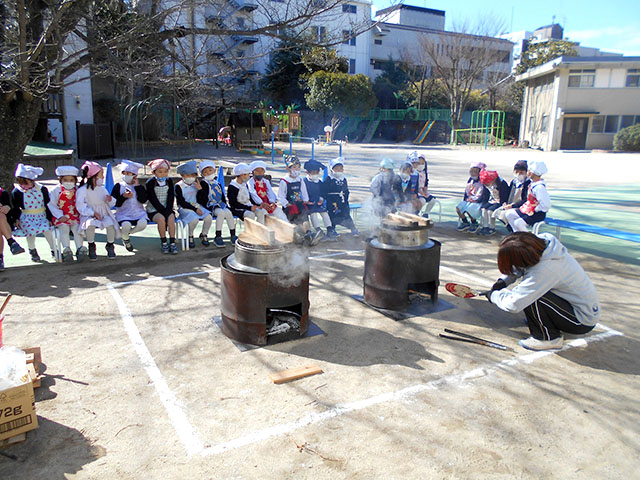 いも煮を作りました。味の決め手は、『みんなで作った味噌。』味見に感激!