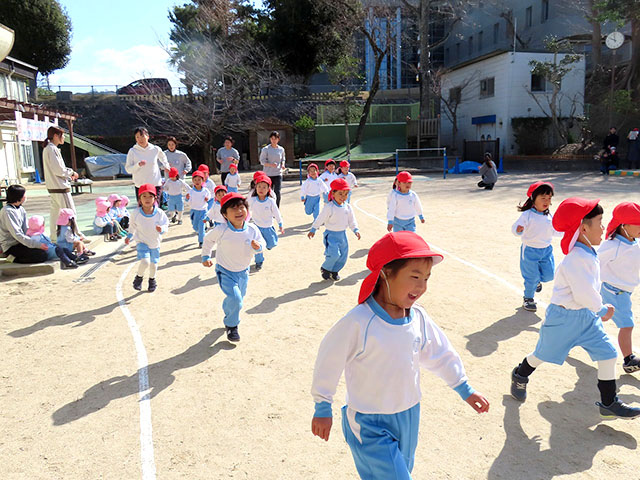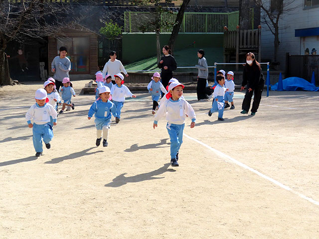 小さな子どもたちは5分、年中さんは7分、年長さんは15分走りました。