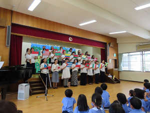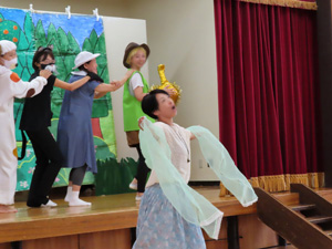 お兄さん、お姉さんに教えてもらいながら、蒸しパン作り。